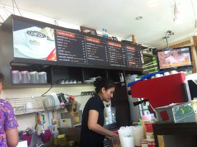 "เป็นร้านขนาดเล็ก แต่มีโซน In door กับ Out Door ค่ะ แต่เวลานี้ขอนั่งข้างในแล้วกันนะคะ"สุภนิดา" สั่ง ชาเย็น อร่อยดี หวาน มัน ส่วน Espresso ขม และเข้มข้นมาก บังเอิญช่วงนี้มี promotion ais ลดไป 5 บาท ซื้อ 2 แก้วหมดไป 90 บาท ร้านเปิดทุกวัน 08.00 - 21.00 น.ที่ร้านมีที้จอดรถให้ด้วยนะคะ "